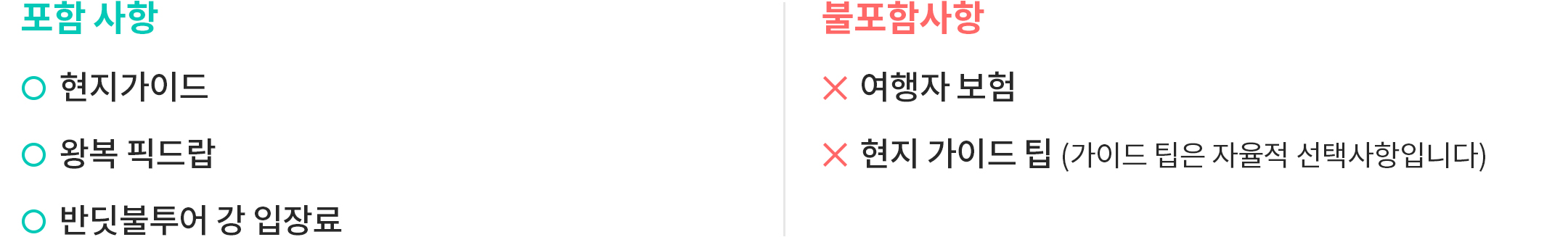 ① 여행 중 가이드의 안내사항 및 안전 수칙을 준수하여 주시기 바라며, 여행 일정 중 발생할 수 있는 모든 안전사고에 유의하시기 바랍니다