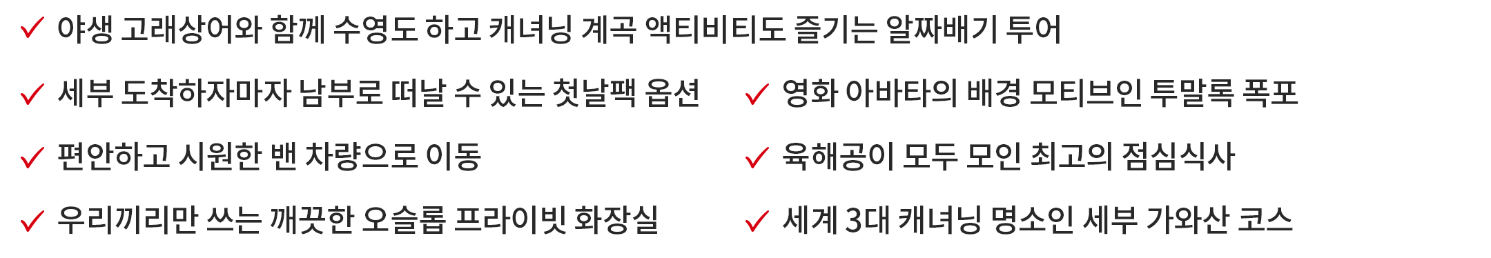 ③ 기상이 악화될 시, 필리핀 세부 해양경찰의 대응단계에 따라 투어가 취소되거나, 투어일정이 변동될 수 있습니다.