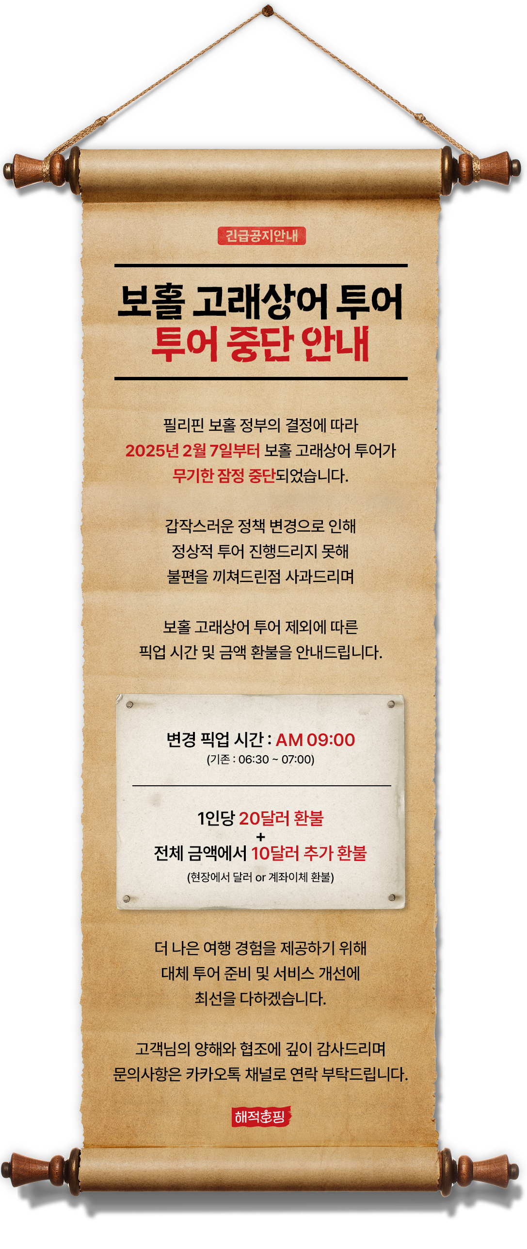 ③ 기상이 악화될 시, 필리핀 세부 해양경찰의 대응단계에 따라 투어가 취소되거나, 투어일정이 변동될 수 있습니다.