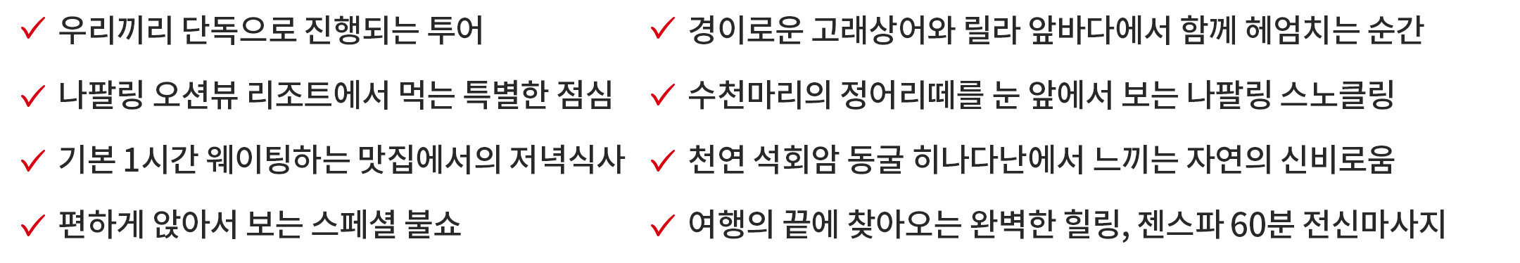 ② 여행자 본인의 과실로 인한 안전사고는 본인이 책임을 지게 되니 각별한 주의를 당부드립니다.