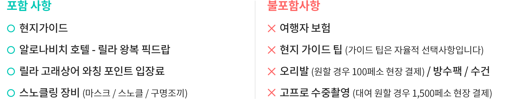 포함/불포함사항