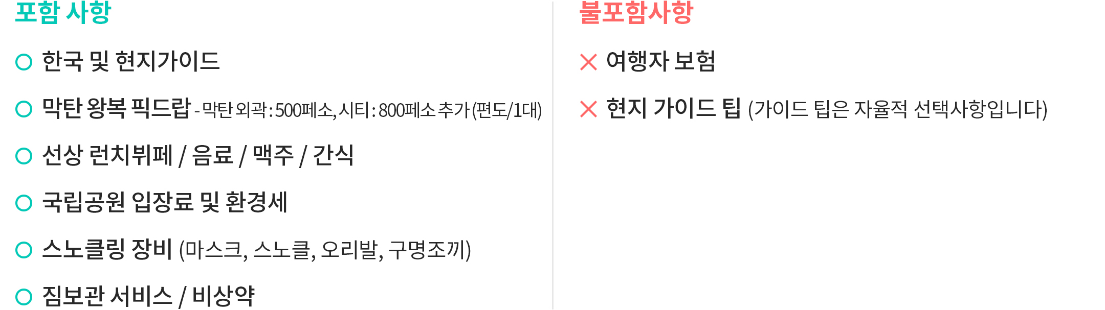 ③ 여행자 본인의 과실로 인한 안전사고는 본인이 책임을 지게 되니 각별한 주의를 당부드립니다.